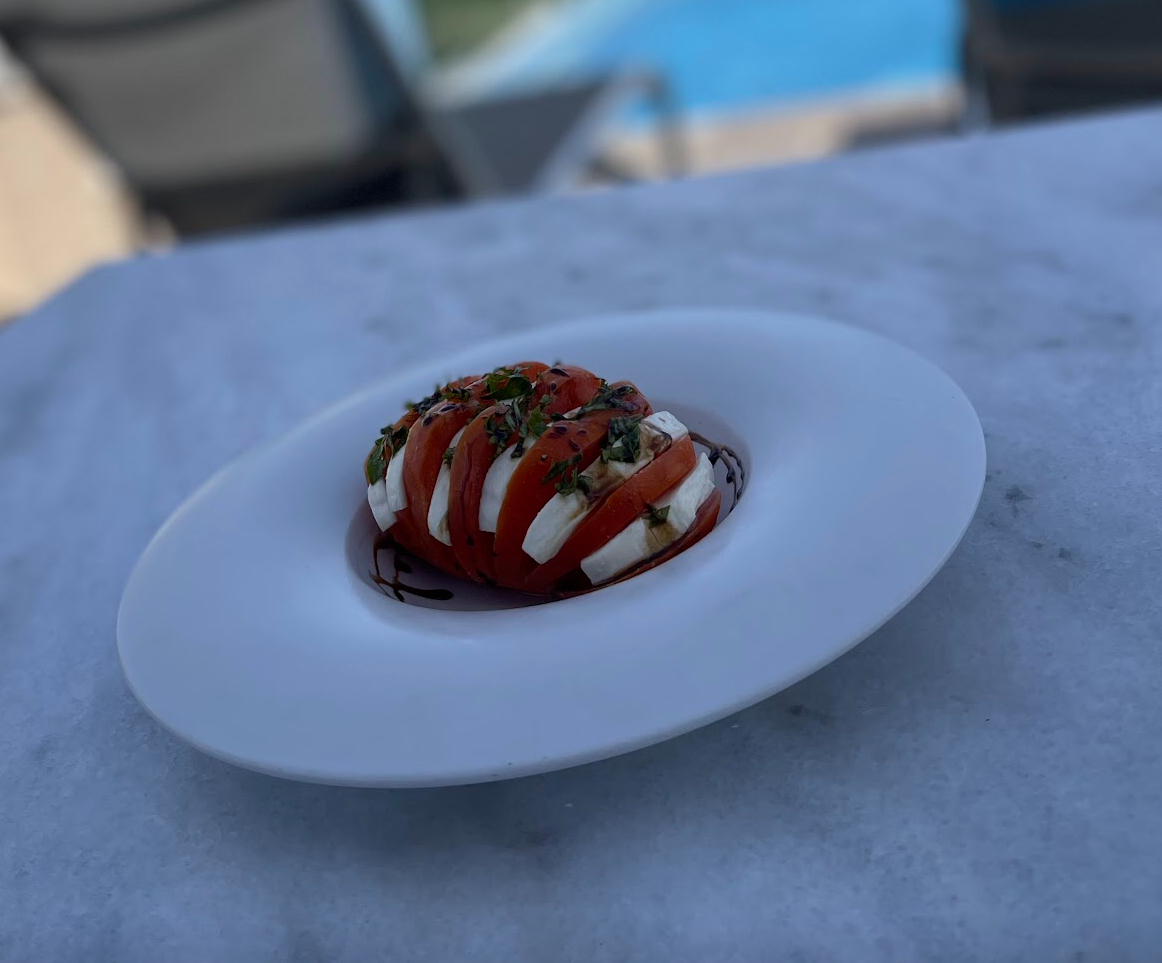 Mozzarella Fresca, Tomate, Albahaca, Aceite de Oliva y Vinagre Bals谩mico.