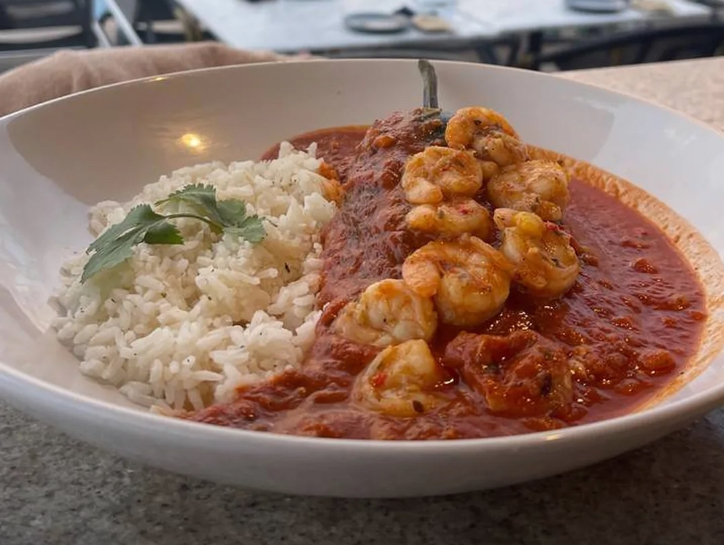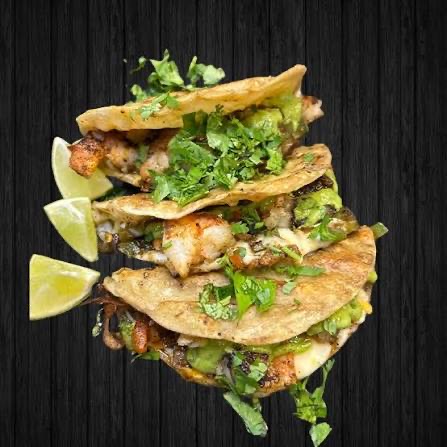 Camarones, Cebolla, Tomate, Pimiento Morron Servidos en Tortilla de Harina.