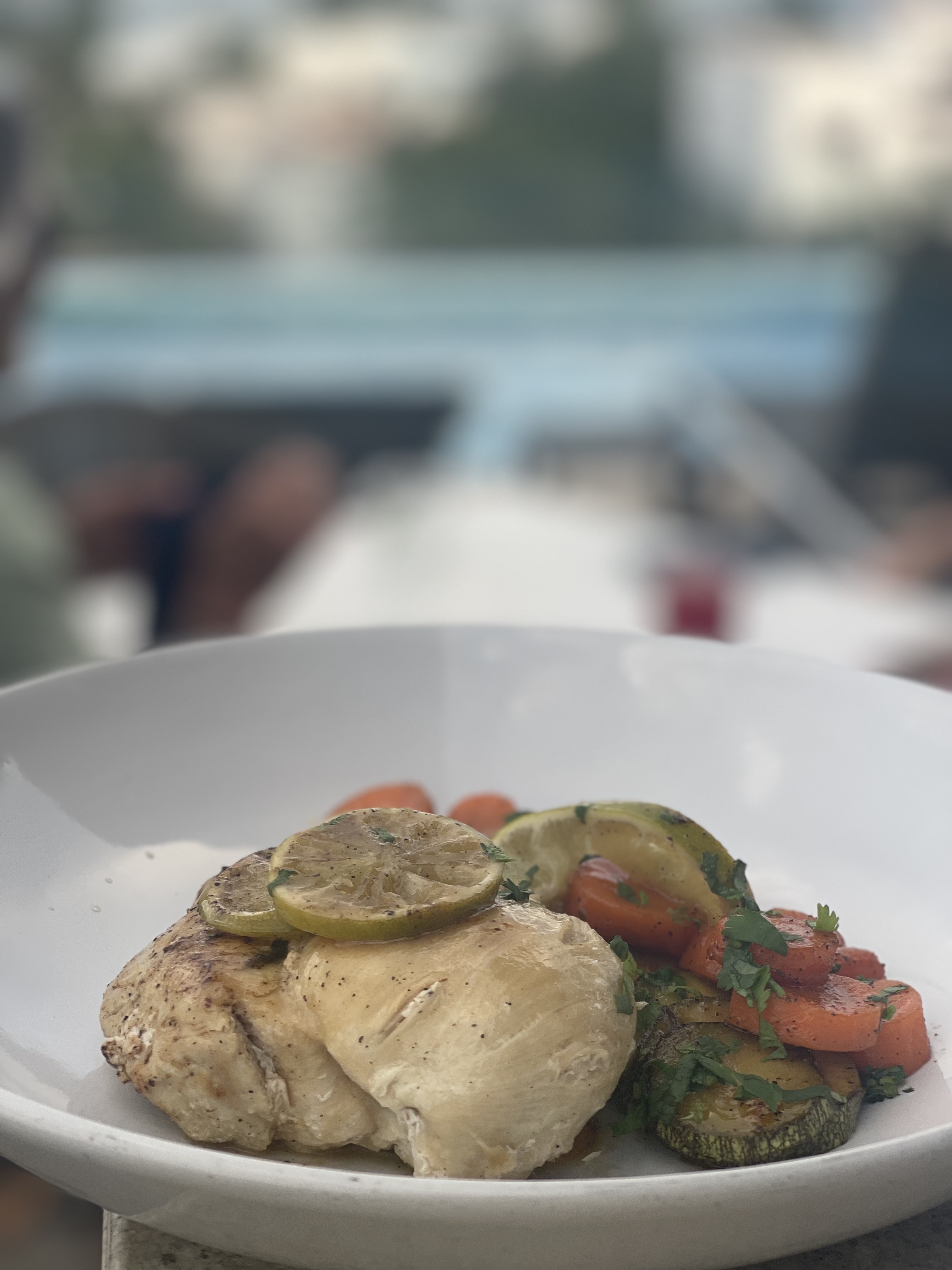 Pechuga de Pollo Mantequilla, Lim贸n y vegetales.