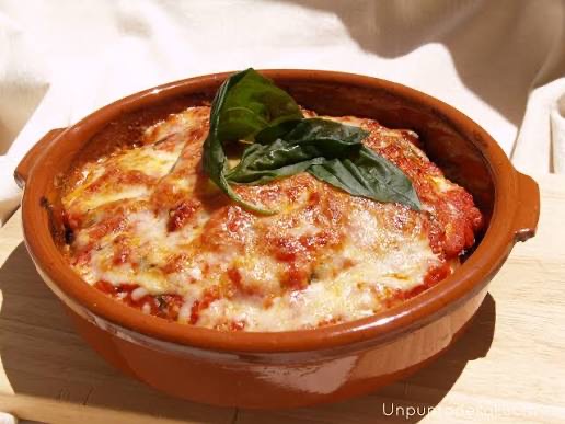 Berenjena, Espinaca, Salsa Pomodoro y queso